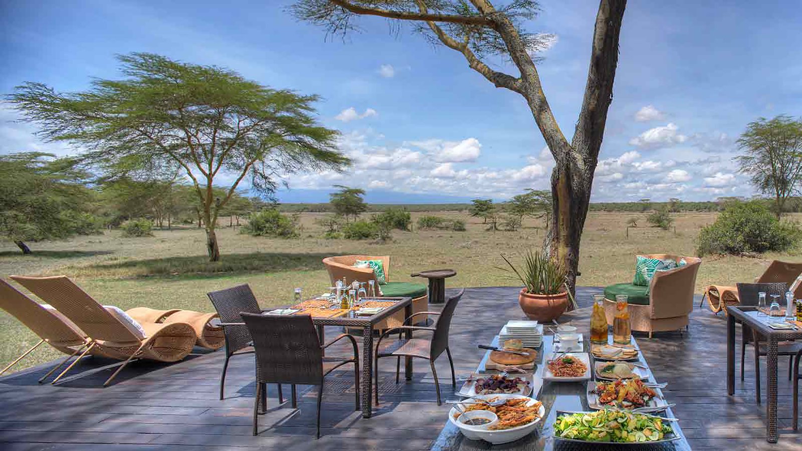 The lodge features just five beautifully appointed thatched cottages (plus a family unit), each with floor-to-ceiling windows, private veranda, cozy lounge with fireplace, and sweeping views of wildlife and Mount Kenya. Days can be filled with game drives, guided walks, horseback safaris, mountain biking, or scenic helicopter flights, while evenings offer bush dinners under starlit skies and serene sunset views over the reserve. Meals often highlight fresh, garden-sourced ingredients and the warm, attentive service enhances the overall safari experience.