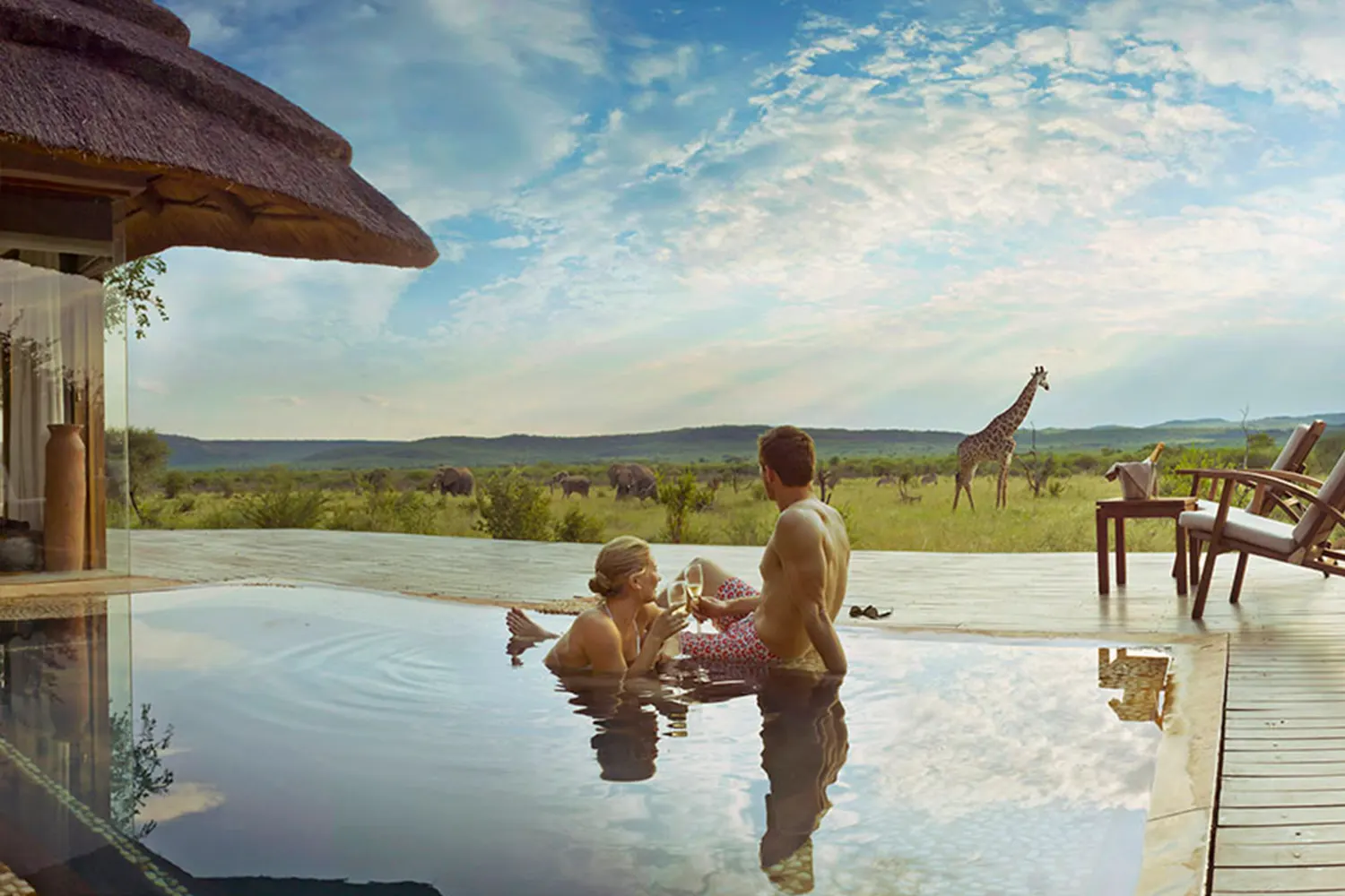 Optional hot-air balloon safari at dawn with champagne breakfast.